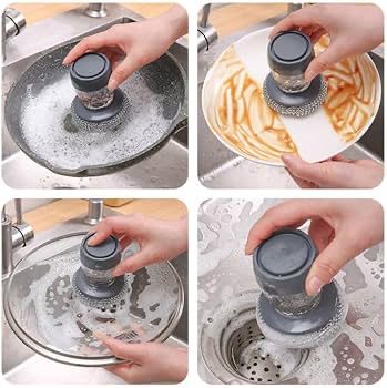 Simplify your kitchen cleanup with our soap liquid pot cleaner. This innovative tool features a built-in reservoir for your favorite dish soap and a durable scrubbing brush. With a simple push of the top button, it dispenses the perfect amount of liquid directly onto your pots, pans, or dishes, making tough grease and grime easy to remove.